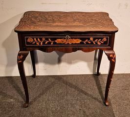 Nussbaum massiv, Gestell um 1830, Blatt später, guter Zustand