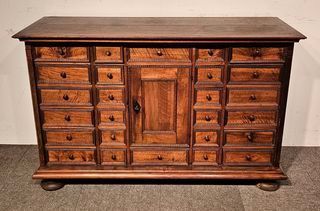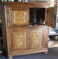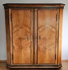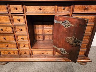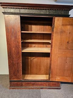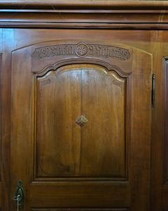 um 1700, Nussbaum massiv, Füsse ergänzt, Fronttüren wurden demontiert