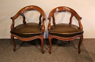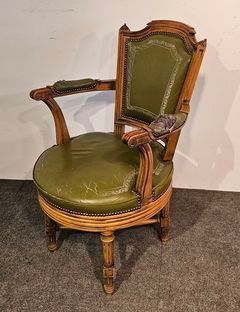 Um 1860, Nussbaum massiv, Lederbezug, guter/brauchbarer Zustand